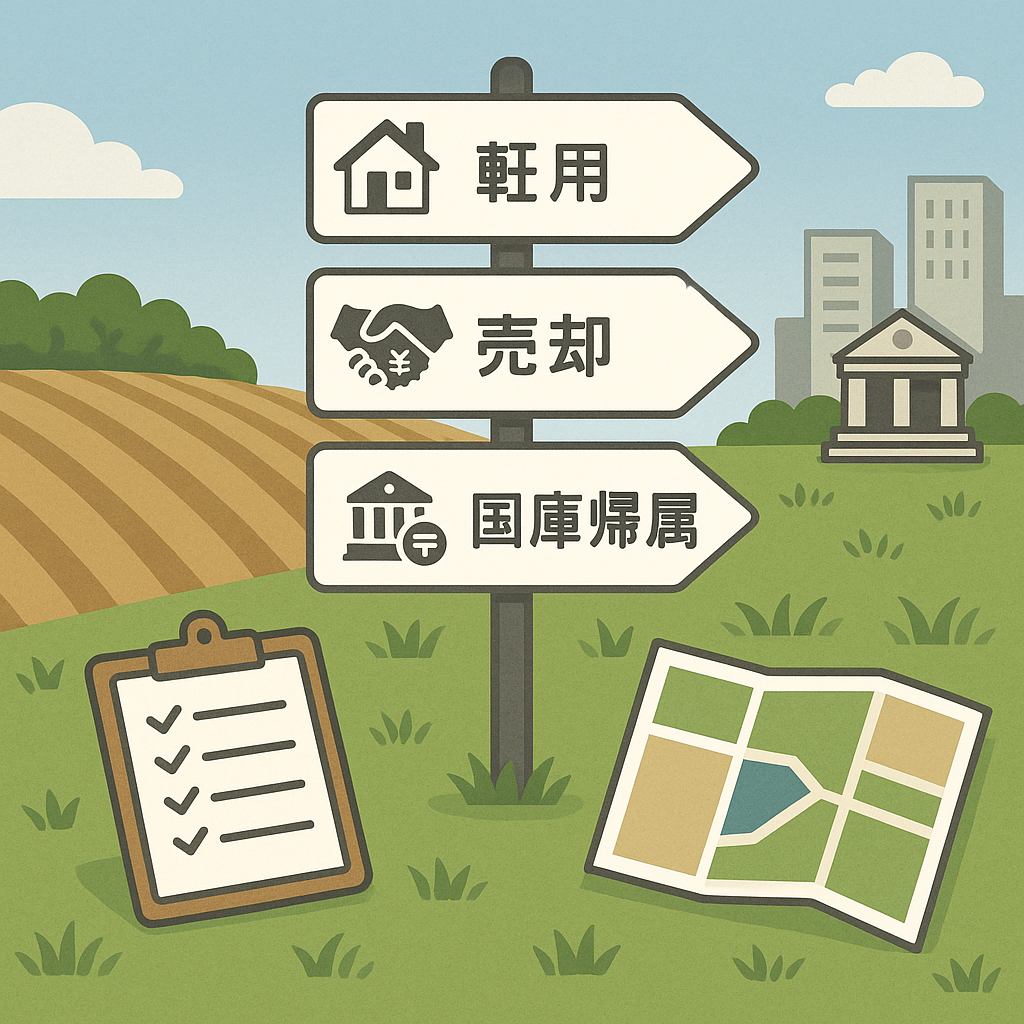 農地の処分方法は主に「売却」「転用」「国庫帰属」の3つの選択肢があります。